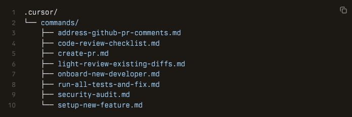 3.团队命令:由团队管理员在 Cursor Dashboard 中创建,并会自动对所有团队成员可用
