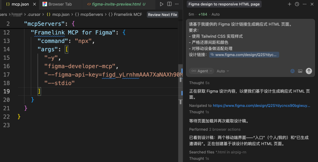 在前端开发过程中,很大一部分工作都在还原UI设计稿的效果,通过这个MCP我们可以自动拿到Figma设计稿的关键信息,包括布局结构、原始尺寸、颜色、文案信息、字体大小、边框属性等信息。