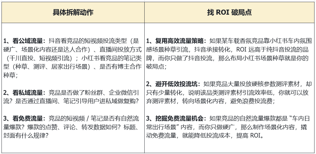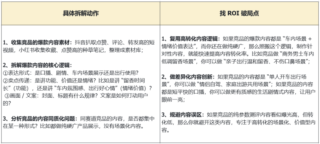 核心问题:竞品的爆款内容是什么逻辑?哪些内容能打动用户、带来高转化?我们能复用并做差异化吗?