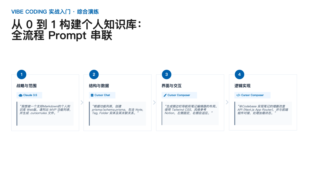 本次实操将通过四个核心步骤,利用 AI 模型、Figma 和 Cursor 工具,从 0 到 1 构建一个支持 Markdown 的个人知识库 Web 版。
