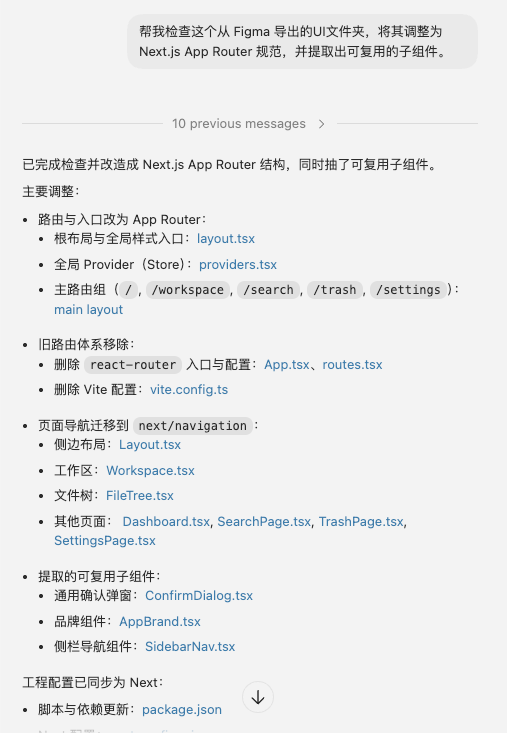 预期结果:Cursor 会分析全局项目结构,自动生成 API 路由,并更新前端组件调用这些接口,完成全栈联调。