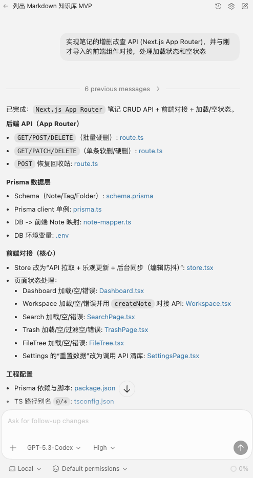 “实现笔记的增删改查 API (Next.js App Router),并与刚才导入的前端组件对接,处理加载状态和空状态。”