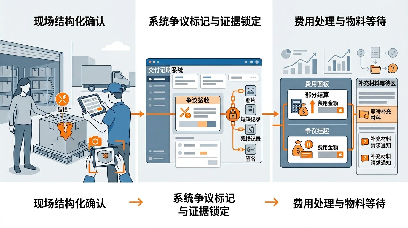 当客户拒签或出现短少/破损,POD模块要输出的不是“上传失败”,而是一套可执行处置: