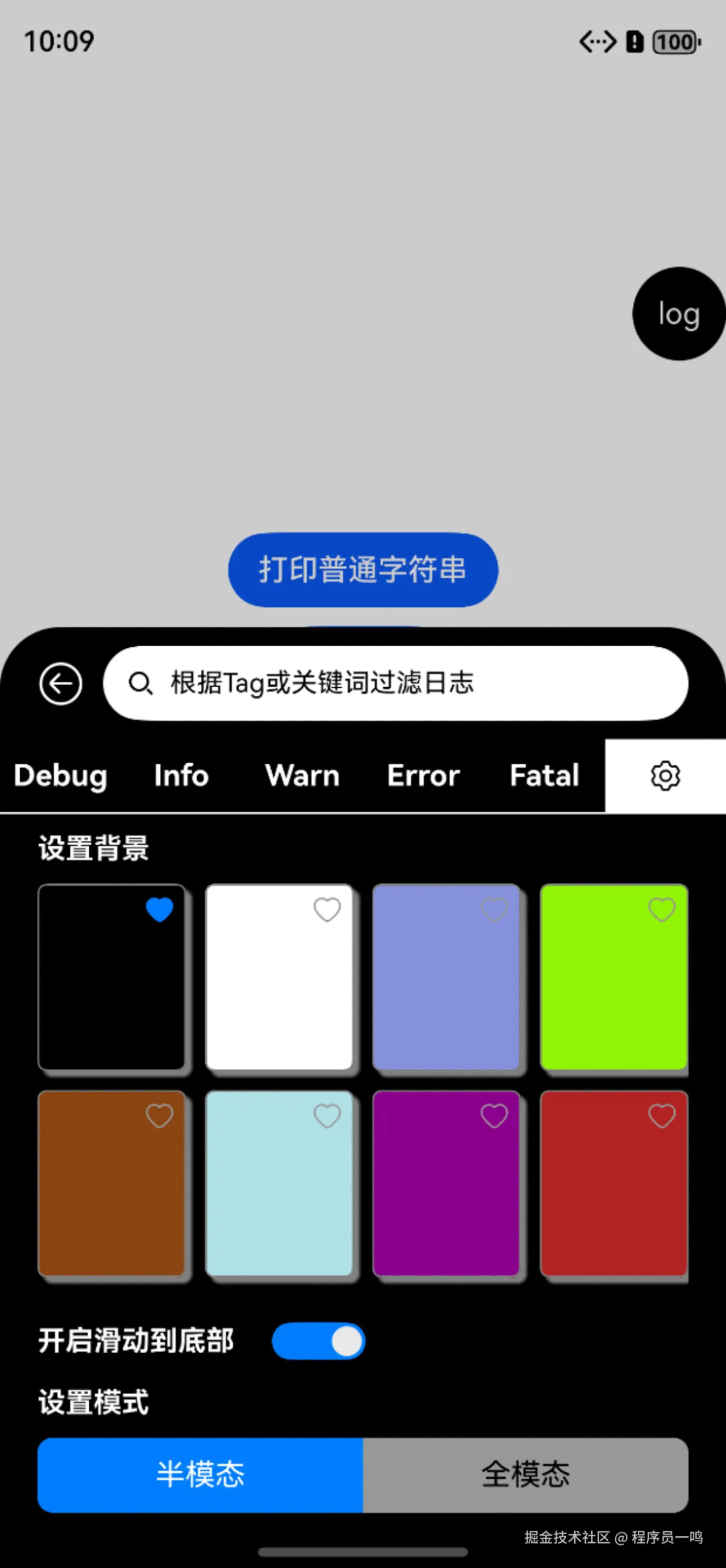 启动悬浮窗之后,触发就可以弹出日志窗口,页面简洁直观,区分了日志等级。