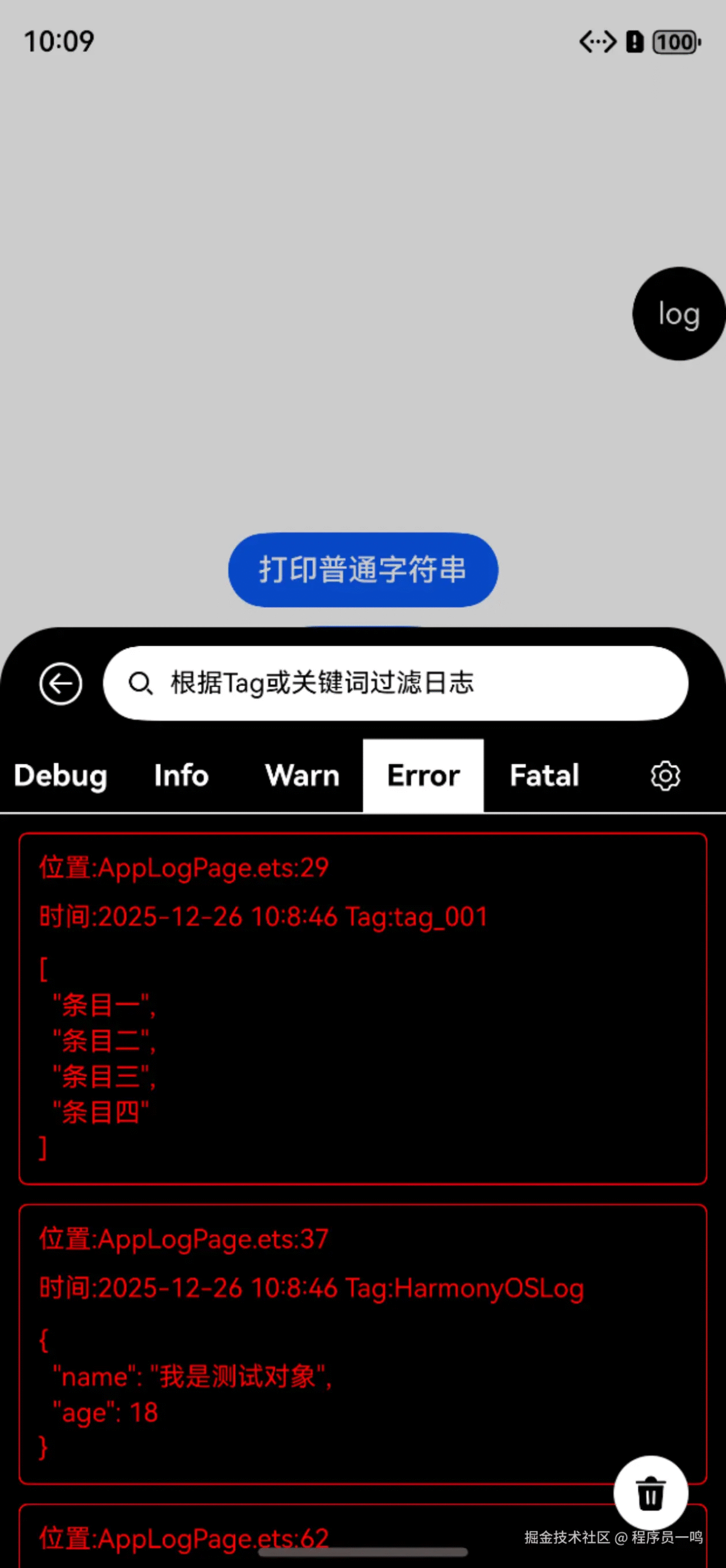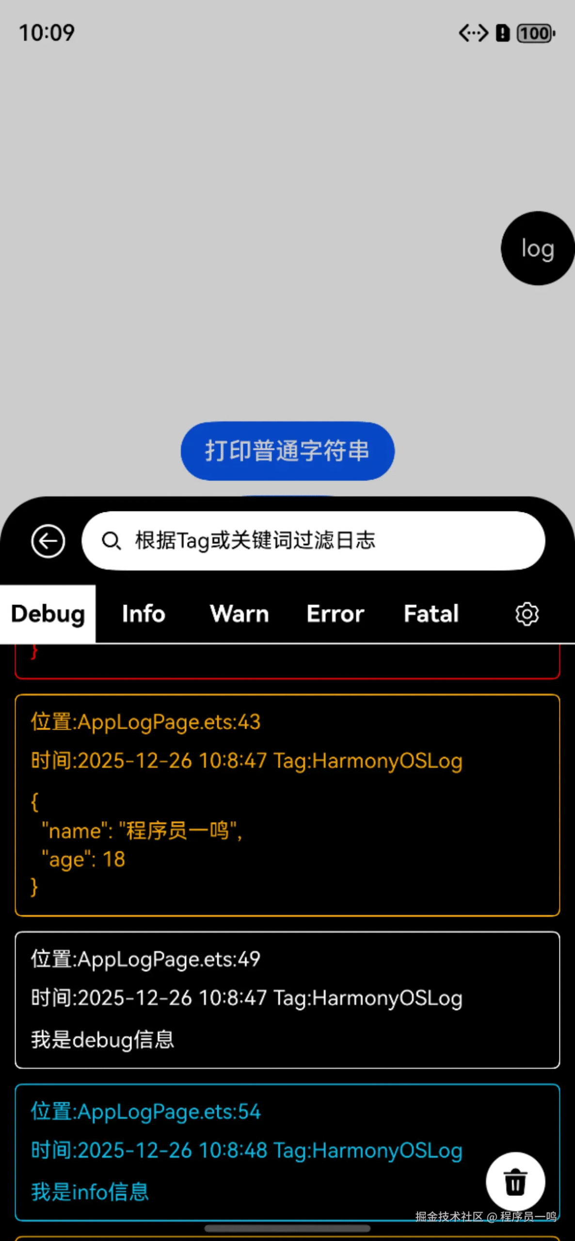 如今,我对log组件做了全新升级,在支持控制台打印的同时,增加了App应用内查看的功能,在测试验证的时候,可以直观的查看日志的输出,而不用在盯着控制台。