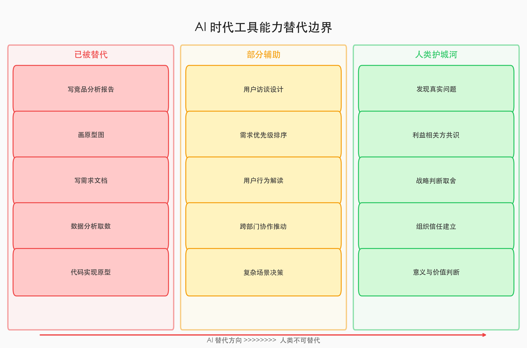 好消息是,产品经理的工作里,有一些东西,AI 在相当长的时间内都做不了。
