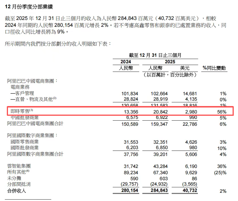 也就是说,要么是单用户变现效率在下降,要么是闪购带来的新增用户消费贡献太低。阿里在用电商的命,续闪购的命。