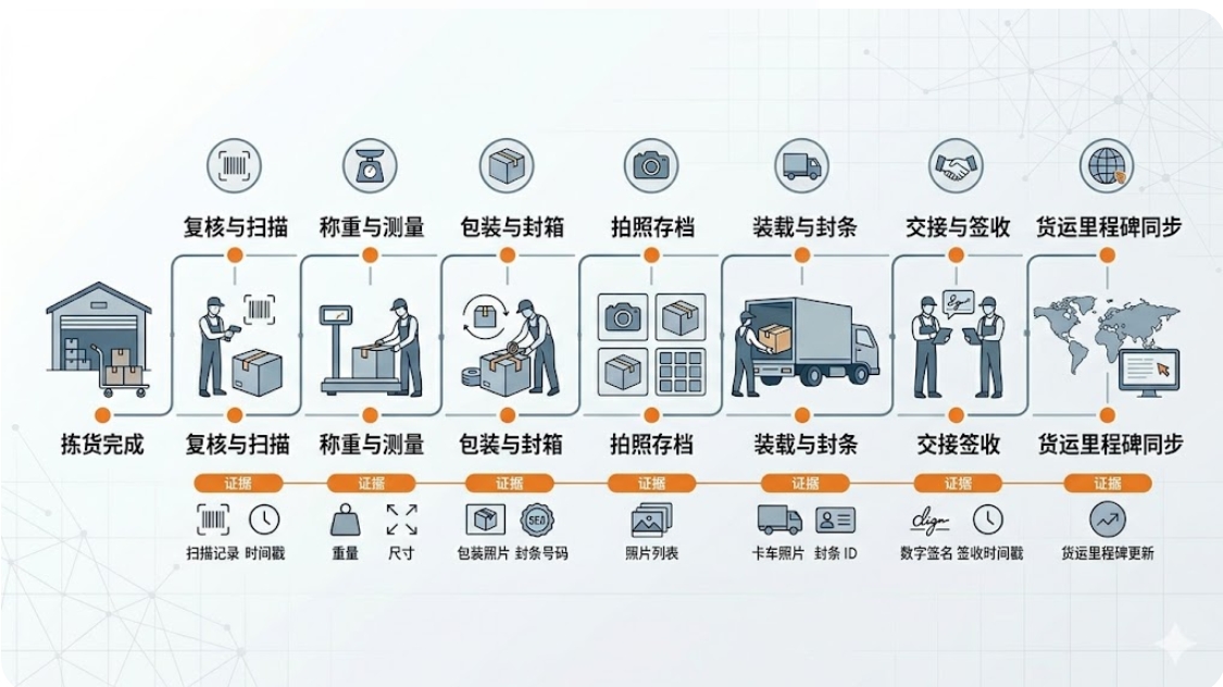 所以复核、包装与出库的目标不是“把货送出去”,而是把交接变成一条可证明的履约链路:可防错、可追溯、可核验、可对账。