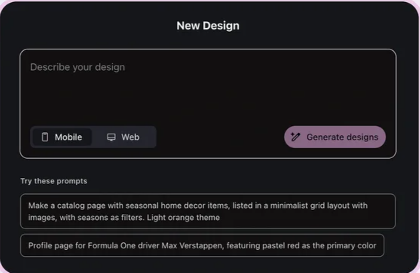 Figma AI更像是设计工具的AI增强,它在Figma的生态里帮你做自动布局、自动填充内容,但它的起点是”你已经在Figma里设计”。