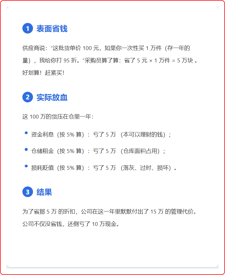 但这批货进仓后,实际每一秒都在产生库存持有成本。