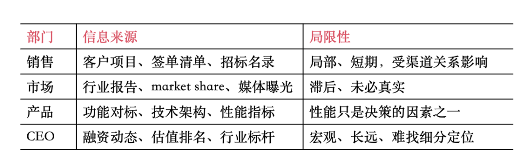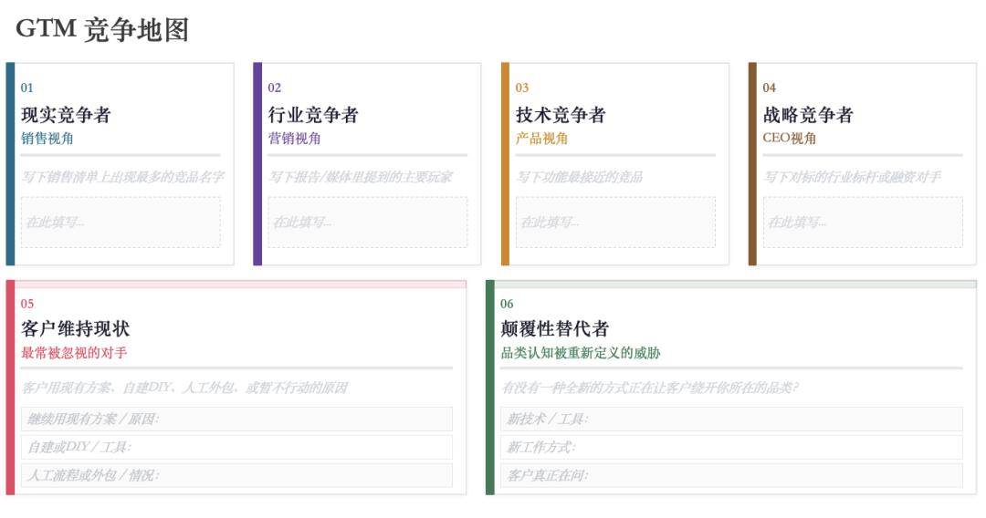 GTM需要有一张完整的竞争地图,我先从各部门的视角出发,分析缺了什么。
