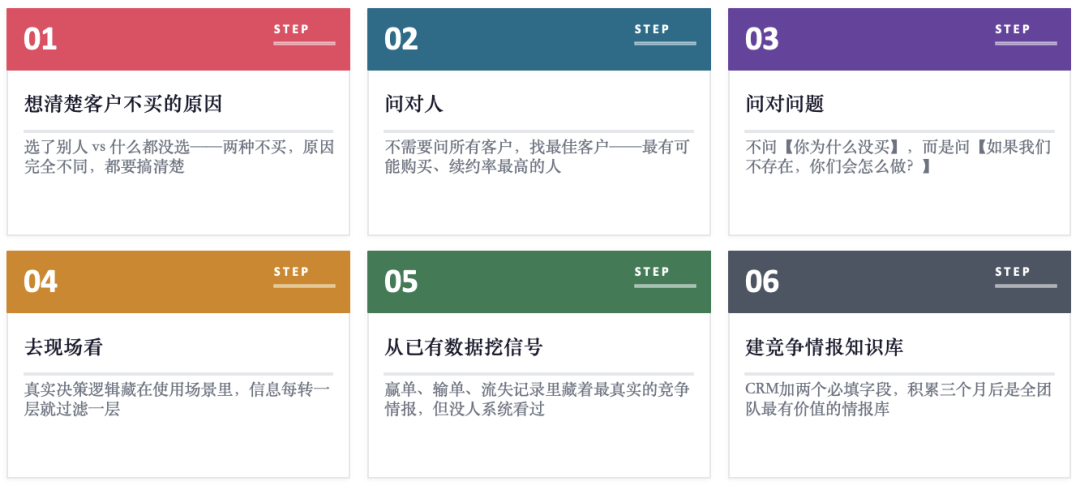 不需要做新的调研。赢单记录、输单原因、客户流失分析、续约对话——这些里面藏着比任何竞品报告都真实的竞争情报。