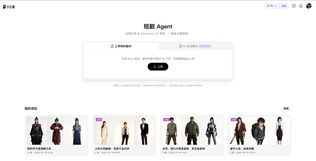 3月19日,字节跳动旗下的小云雀AI官宣上线短剧Agent功能,用户最多可上传10万字剧本,一键直出视频成片。不用人拍、AI全搞定,零基础小白也能轻松打造专业级短剧,无论是对普通用户还是专业创作机构,都将产生重要的影响。