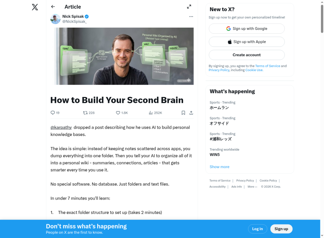 Nick Spisak 把 Karpathy 的思路拆解成了一个 7 分钟就能跟做的完整教程。我读完之后觉得,这可能是目前最实用的 AI 知识管理方案——因为它没有任何门槛。