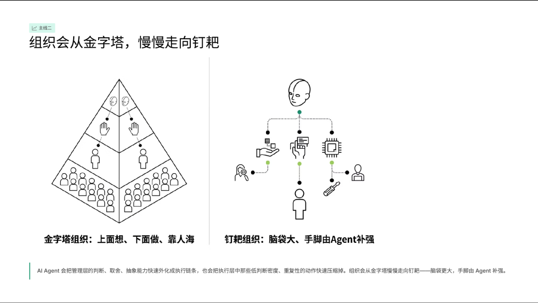 组织从金字塔走向钉耙型:脑袋变大,手脚由Agent补强
