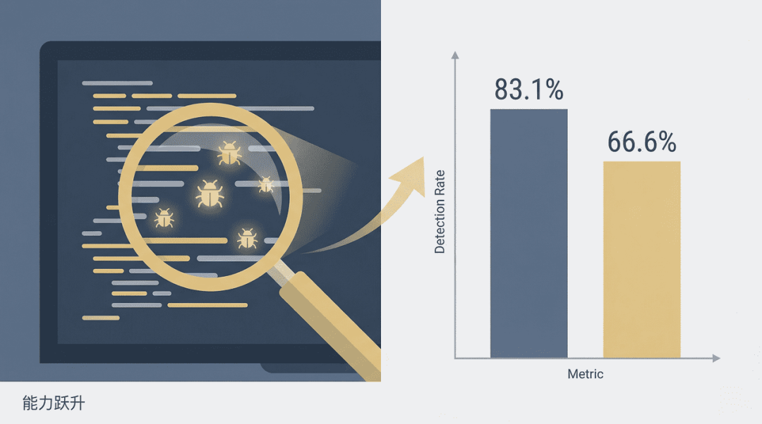 这款模型在网络安全领域的测试数据相当惊人。在衡量漏洞复现能力的 CyberGym 测试中,它得了 83.1%,而上一代旗舰模型是 66.6%。在 Firefox JS shell 环境下的漏洞利用测试里,它的成功率是 72.4%,上一代不足 1%——提升了近 80 倍。它还找到了一个藏在 OpenBSD 里 27 年的漏洞,以及 FFmpeg 里一个被自动化测试工具命中 500 万次却始终未能识别的缺陷。