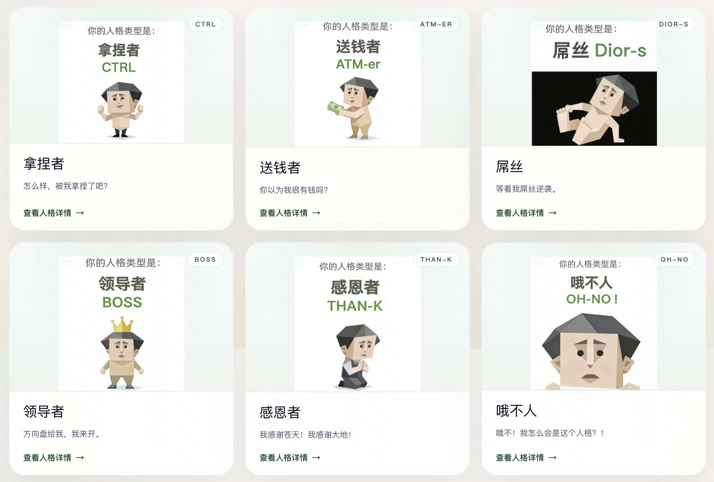 这反而让我觉得它很聪明。因为它从一开始就没打算跟MBTI拼“理论基础”,它抢的是另一件事:在今天这个互联网环境里,谁更容易被截图、被转发、被朋友接话。