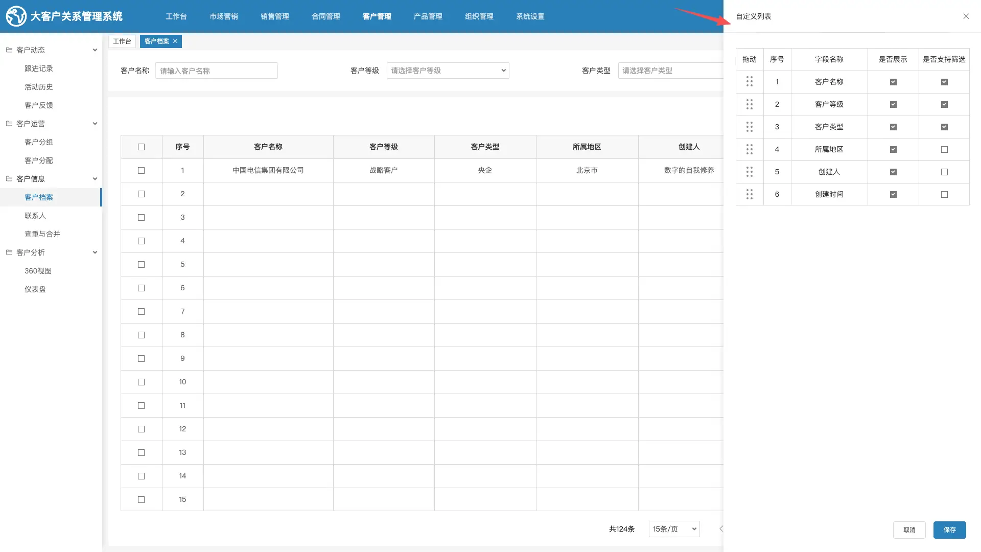 第三步:保存成功后,列表页上方会出现一个Tab栏。用户可以通过点击“重点客户”等不同视图标签,在不同的字段配置与查询条件组合之间瞬间切换。