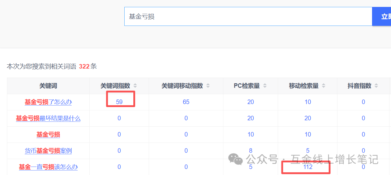 举例:关于基金亏损后从搜索长尾词来看用户关注的更多的是结果,顺着这个点做运营可能更容易抓住用户的心。