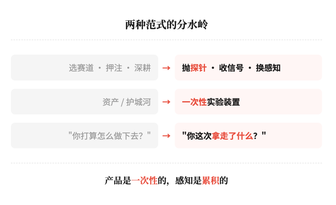 所以我现在越来越认同一句话:产品是探针,感知才是资产