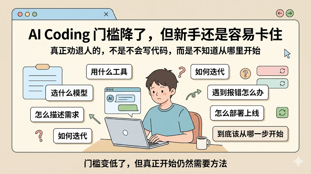 真实情况是看上去 AI Coding 门槛低,但多数同学是还没真正开始就卡住,很容易被劝退的。