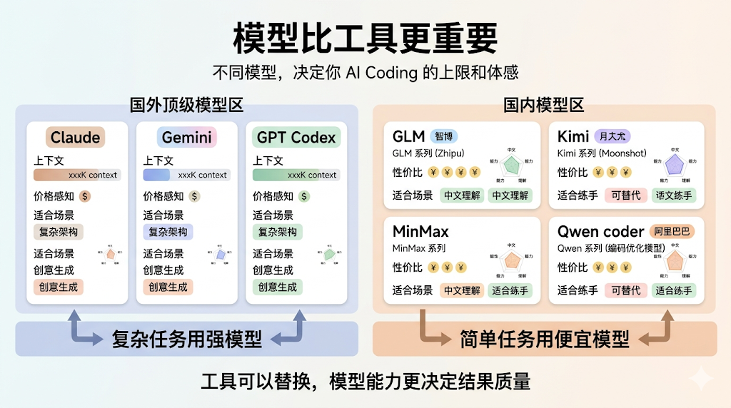 工具的选择不重要,但是模型一定很重要,模型才是 AI 编程的灵魂