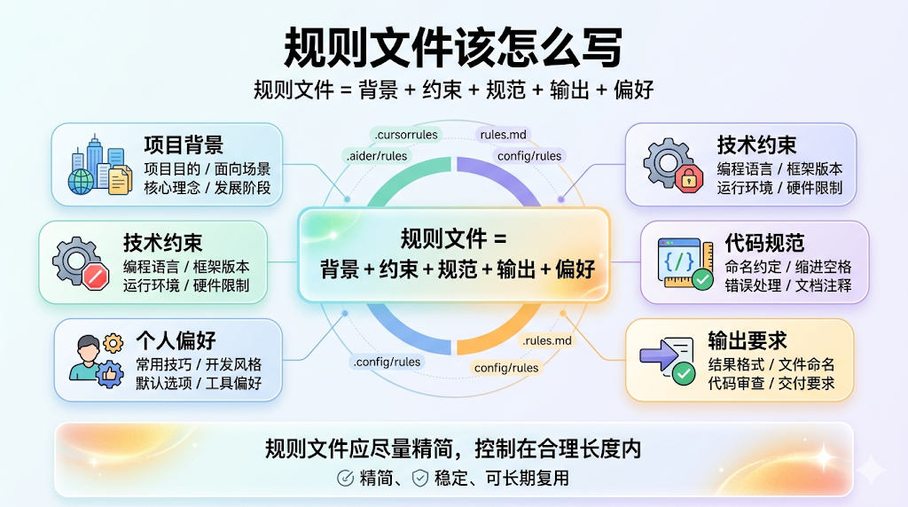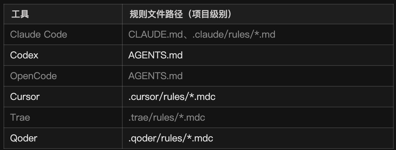 需要注意的是,规则文件应该尽量保持精简,建议只保留需要频繁向大模型说明的内容,总行数最好控制在100行以内,如果内容太多,可以利用子目录的形式进行分发。