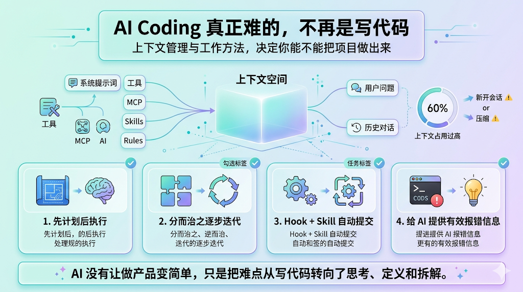 下面我们在看 AI Coding中,已经被反反复复验证的一些最佳实践: