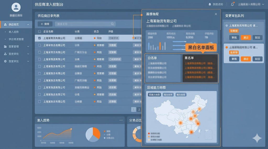 换句话说,准入模块不是一个“供应商登记表”,而是一份持续更新的能力说明书。