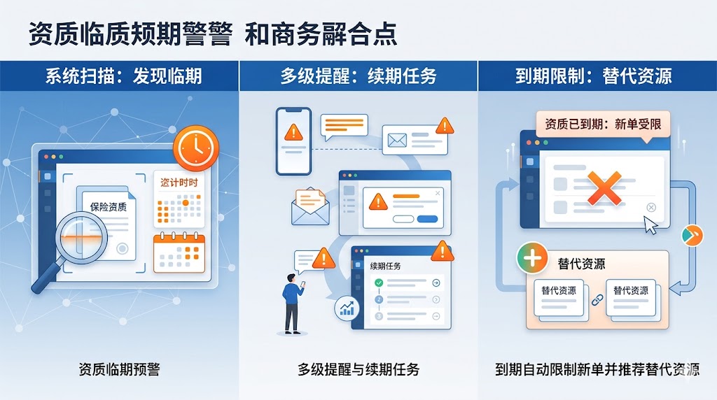 于是,系统里看似“资料齐全”,现场却可能正在把单派给保险过期、许可失效或已被处罚的供应商。