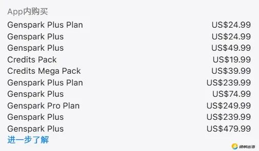 在商业化设计上,Genspark采用“订阅+积分(Credits)”并行的模式。用户通过订阅获取基础使用权限,而具体AI能力的调用,则以积分作为消耗单位进行结算。