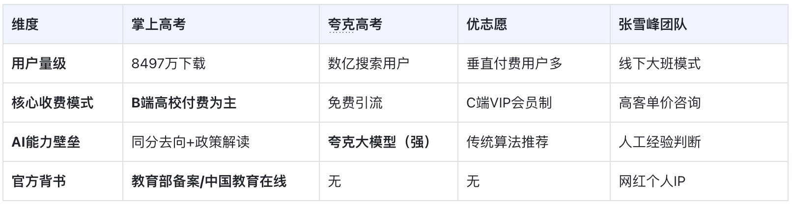 - C端付费转化率有限:大量功能免费,C端直接变现能力弱于优志愿等纯工具型产品。