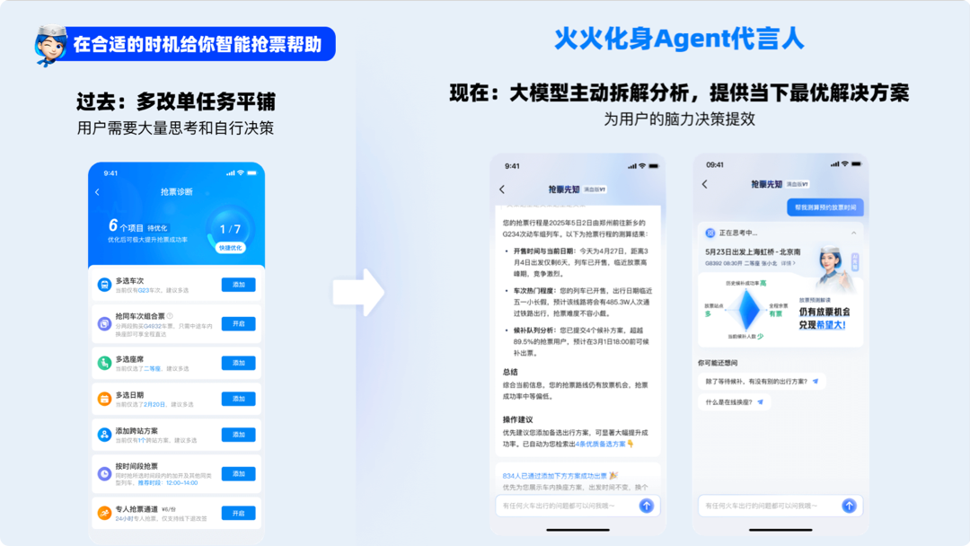 携程打造 AI 员工 “程火火”,突破常规场域,构建台前幕后双线对话新体验,实现全域情感链接。公域化身用户好友,实现从抗拒到追更的态度逆转;产品端简化沟通,让复杂的产品“说人话”。凭借鲜活人设与温度感,携程火车票从工具蜕变为贴心旅行搭子。