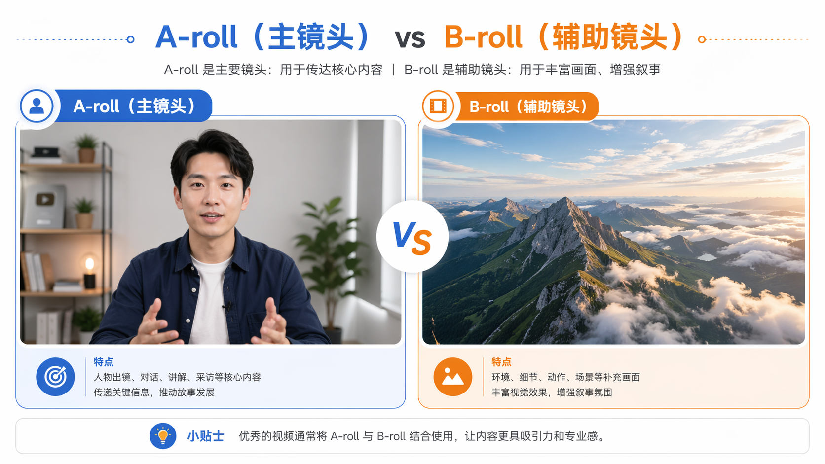如果你经常看旅行 Vlog、纪录片或知识类短视频,会发现画面不只是盯着说话的人——镜头会频繁切换到风景、物品、街道、人群。