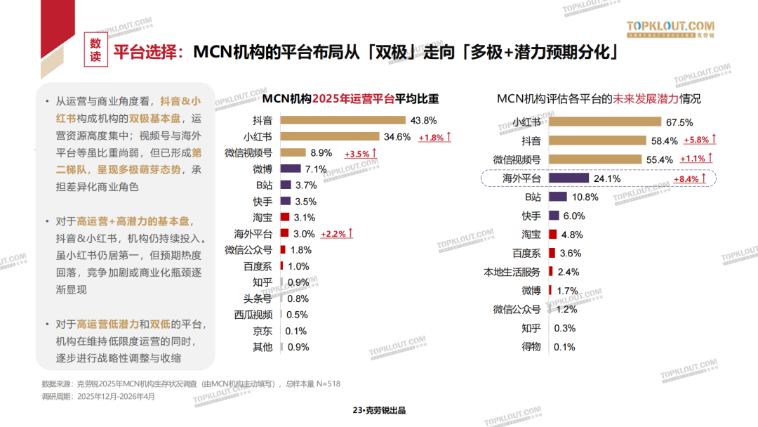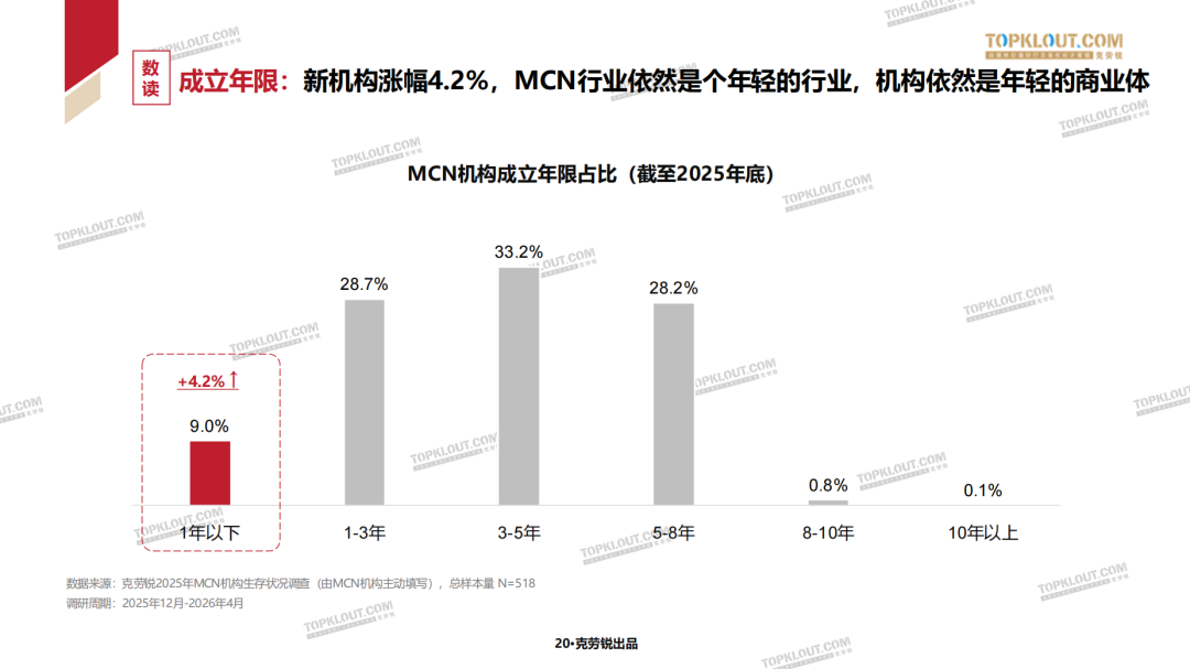 - 2.5%:2025年,中国MCN机构注册净数量同比增速降至2.5%,创十年新低,行业不再膨胀。