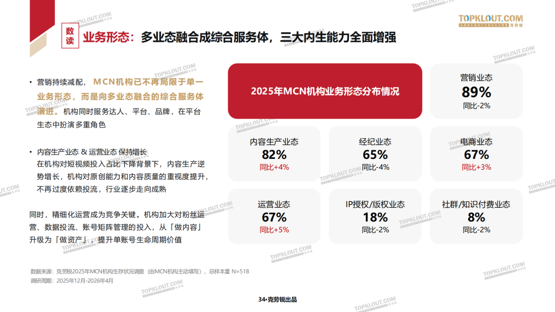 数据显示,纯广告营销类的业务正在持续减配,而运营业态同比增长了5%,内容生产增长4%。这不仅仅是业务比重的调整,更是行业的进化。