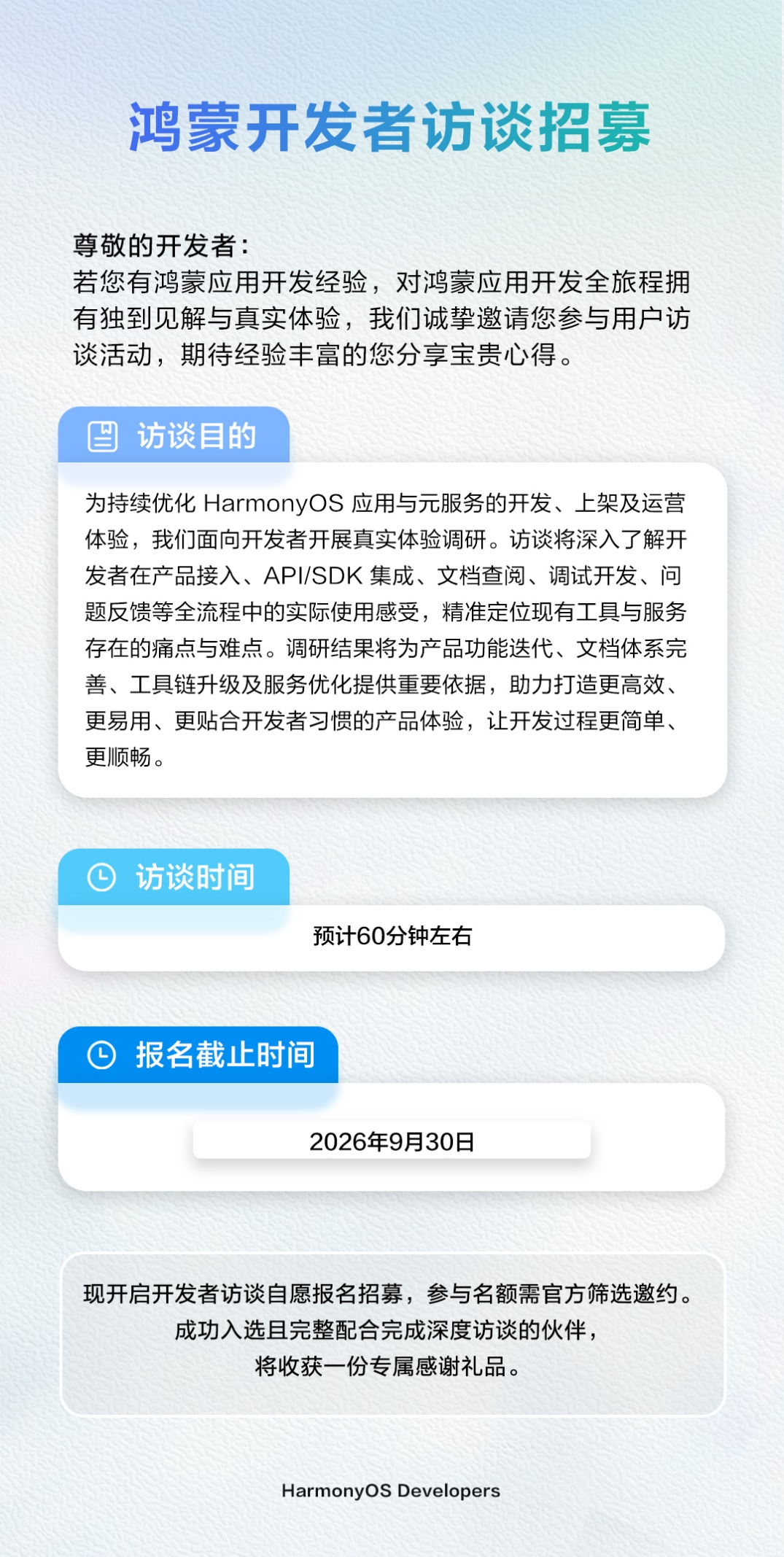 鸿蒙开发者访谈招募