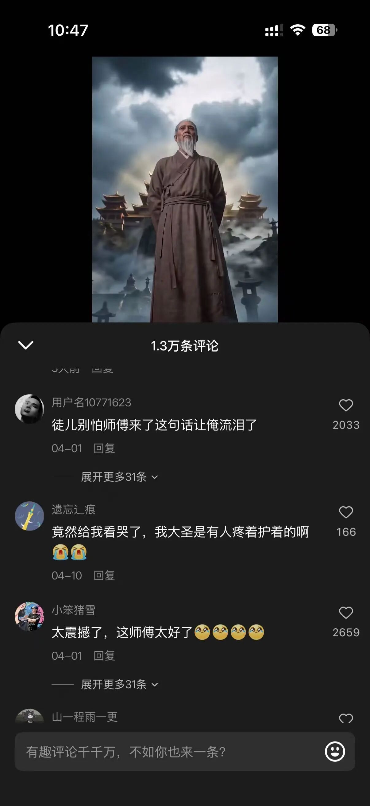 说实话,好些个情节让我动容,就像我在《菩提临世真人AI版》的评论区看到有用户说想不到会为一部AI短剧感动一样——尽管我个人其实很不喜欢《菩提临世真人AI版》这部堆叠炫技和情感狂躁之作,但我还是着意去看了用户评论。