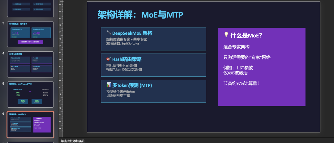 测试PPT生成能力时,我直接选择了使用DeepSeek-V4的技术文档,共59页pdf,要求是生成一个给大学生做讲座用的PPT。