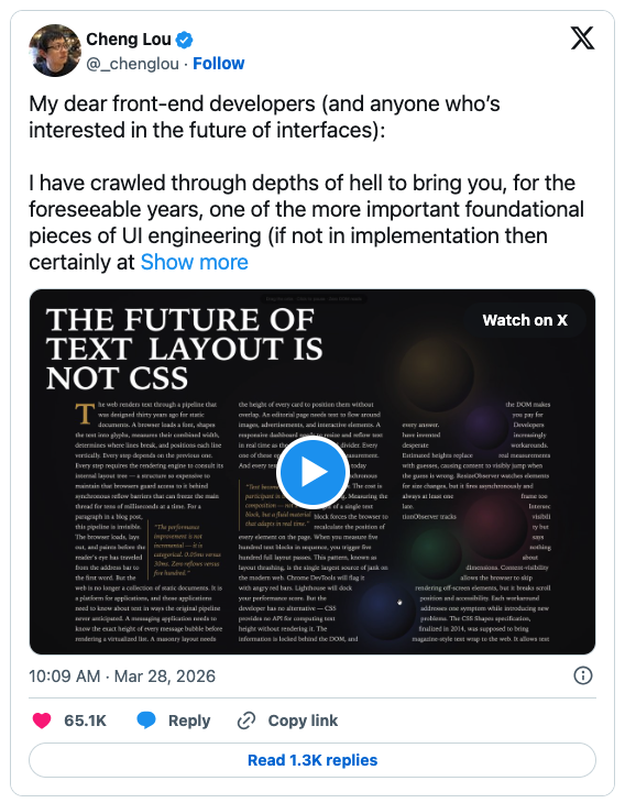 如果只看那些出圈视频,很容易误会 Pretext 是一个“让网页文字更酷”的好玩的小工具。