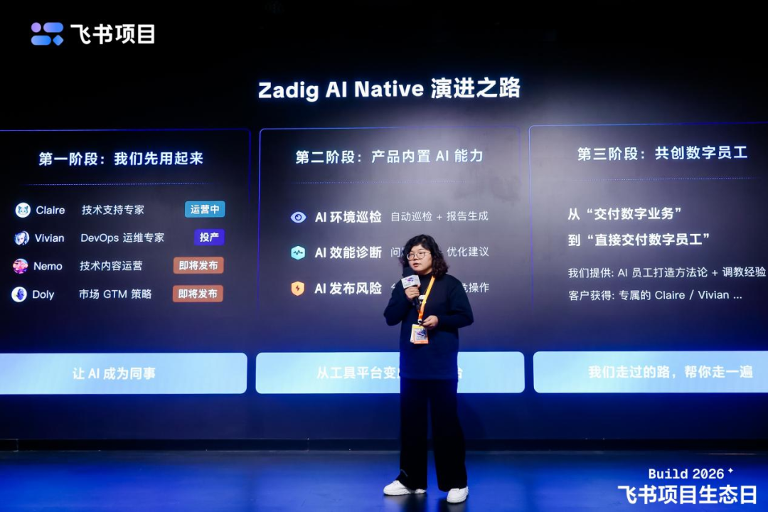 开场飞书产品副总裁、飞书项目负责人洪涛没有讲功能,先说了“麻烦”:“写代码、写文档、出方案,确实变快了。但干活的节奏越快,信息不同步、流程断开、责任扯皮的情况,反而会成倍放大。”