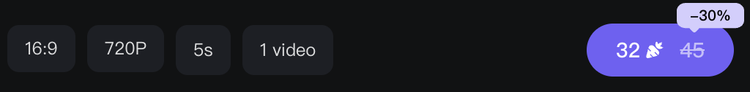 截取了几个比较常用的参数配置所消耗的点数,720P、5S的一个视频优惠价格32分,按标准会员来算2.56元一个。720P、15S的视频则是7.6一个。