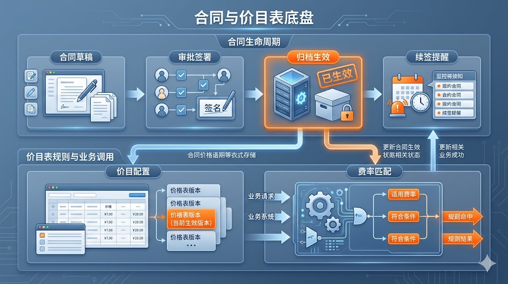 三、系统底盘:合同生命周期和价目规则要同步设计