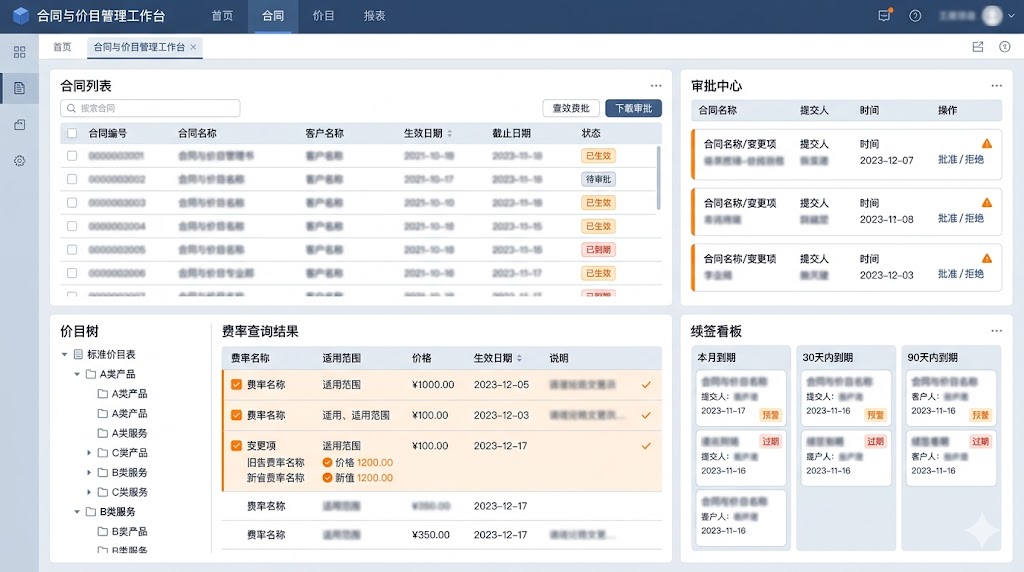 因此,合同与价目表模块的价值,不在于“把合同存起来”,而在于把条款和价格变成系统可计算、可匹配、可追溯的规则。