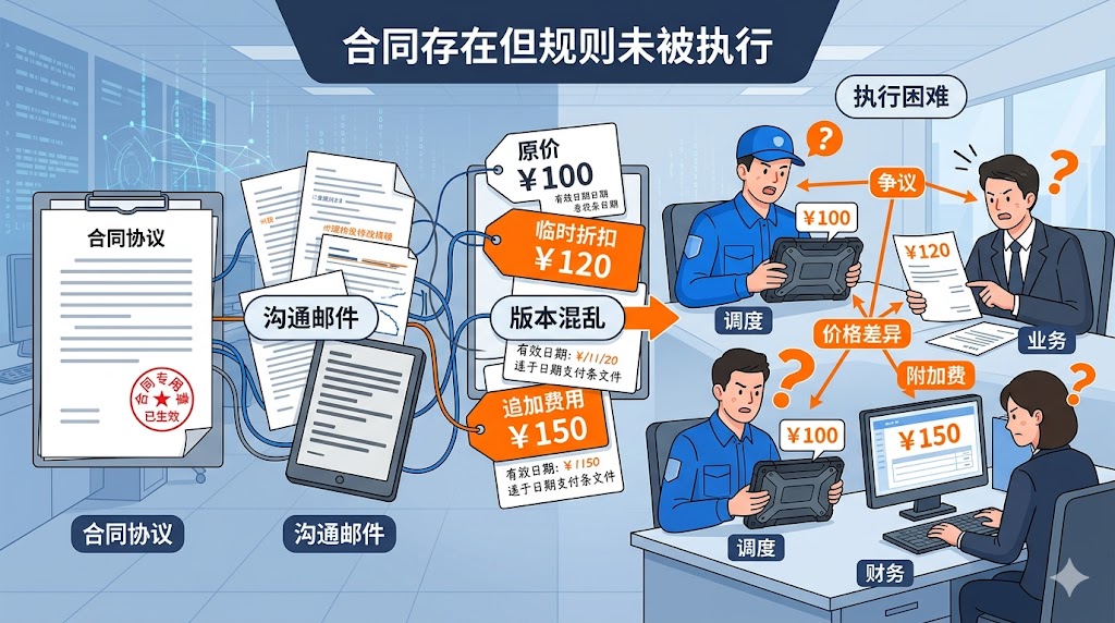 只有当订单、调度和对账都通过规则匹配来取价,合同模块才会真正影响经营结果。