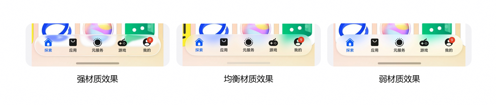 在 HarmonyOS 6(API 23)中,HDS(HarmonyOS Design System)组件新增了悬浮页签与沉浸光感材质相关能力。