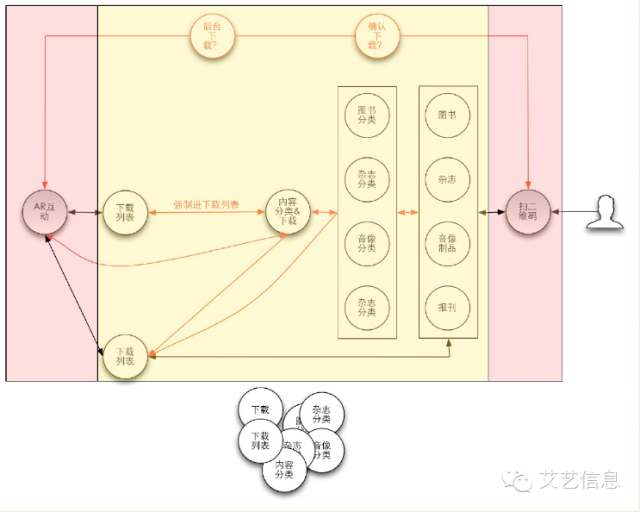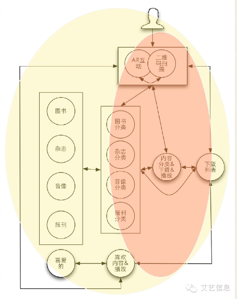 注意:双箭头表示可以返回到上一步。这就是一个任务路径。但是,如果一个产品的功能非常复杂且有多个主要功能时,用户要完成最终目标就得经过更多的节点,或者支任务。如图: