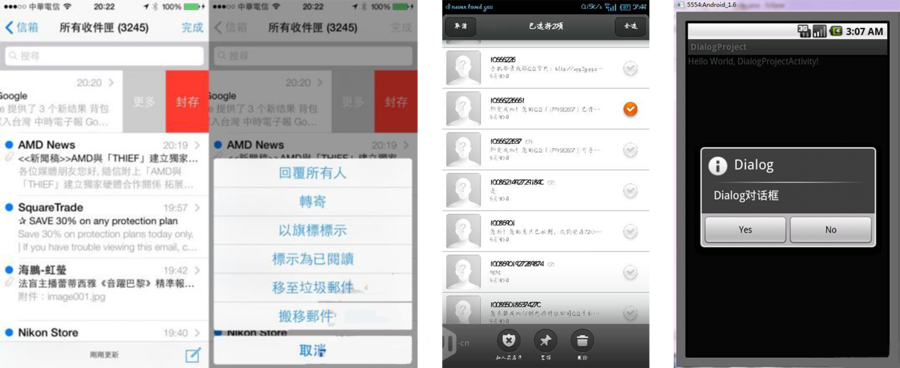 例外的是,Android里面也可以有单条item的滑动,如新版QQ,这种比较少见。安卓L的短信,可以滑动进行归档。大Android啥都可以有。