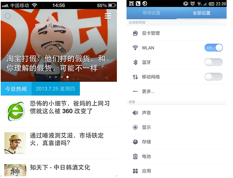 iOS和Android的区别,想了很久,也没想出特别多,这两个系统有些东西越来越通用(设计上来说),尤其是Android上,可以实现所有的效果,当然有些看上去iOS很像。长得和iOS很像的Android应用很多,好多大牌也这么做,比如说现在的QQAndroid5.1.1。这样只需要一套设计,出一套资源就OK了,比较高效节约。两个平台的使用体验比较统一,但我还是喜欢有各系统设计本来特色的设计,安卓感觉的应用,wp感觉的应用。