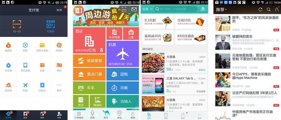 和支付宝类似的,还有一些旅游类应用,去哪儿,携程等。